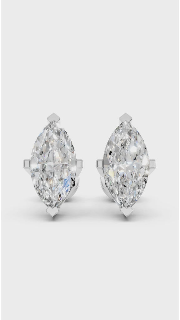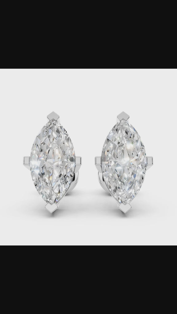 •Product Type: Stud Earring •Metal: 925 Sterling Silver •Gemstone Type: Moissanite Diamond (Passes Standard Diamond Tester) •Diamond Weight: 2 Carats (1 Carat Each) •Diamond Shape: Marquise •Diamond Size: 11mm x 5.5mm •Diamond Color: D-E-F •Diamond Clarity: VVS •Diamond Cut: Excellent •Diamond Polish: Excellent