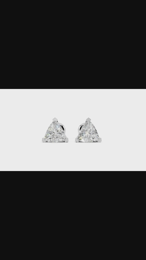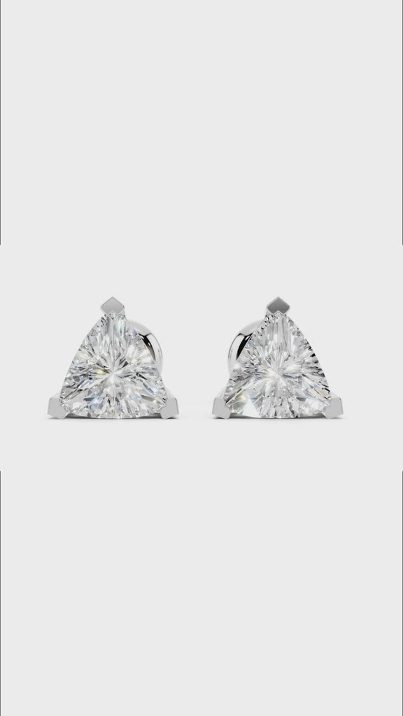 These trilliant cut moissanite earrings stand out with their bold triangular brilliance, reflecting light from every angle. The unique cut offers a contemporary twist on the classic stud style. Because of its wide facets, each stone displays maximum fire and brilliance while remaining elegant and balanced. Moreover, moissanite is durable, eco-friendly, and a sustainable alternative to mined diamonds.